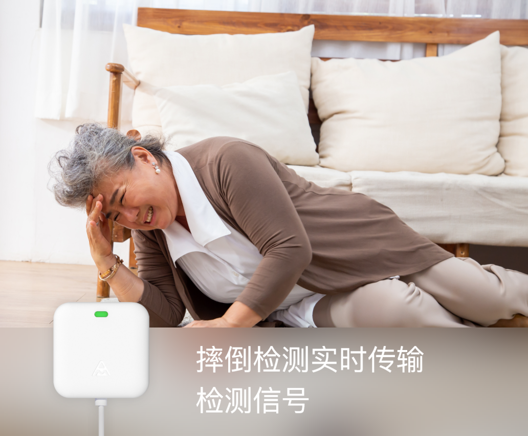 跌倒/昏倒偵測能在設定範圍內,偵測和判斷長者可能跌倒/昏倒的狀況,迅速發出警報到「安管家」App 及通知守護員團隊,提供適切和緊急的支援